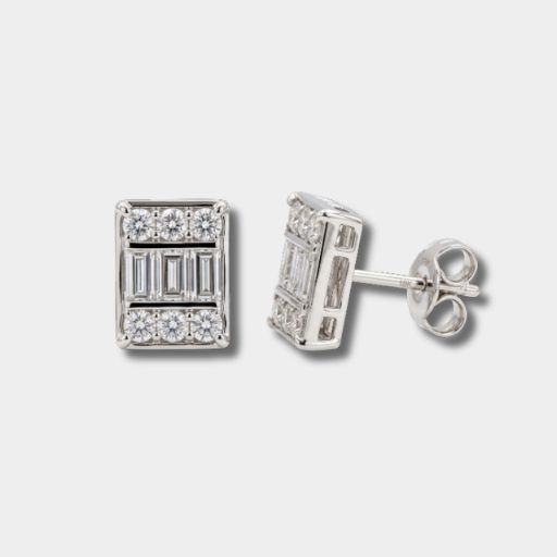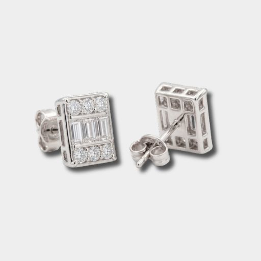 • Elegant Baguette & Round Stud Design for a contemporary, refined look