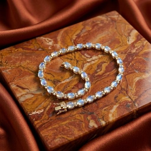 The Elegant Rainbow Moonstone Tennis Bracelet displays luminous gemstones which are arranged in a refined line design and enhanced by lab-grown diamonds which create additional sparkle 💎.